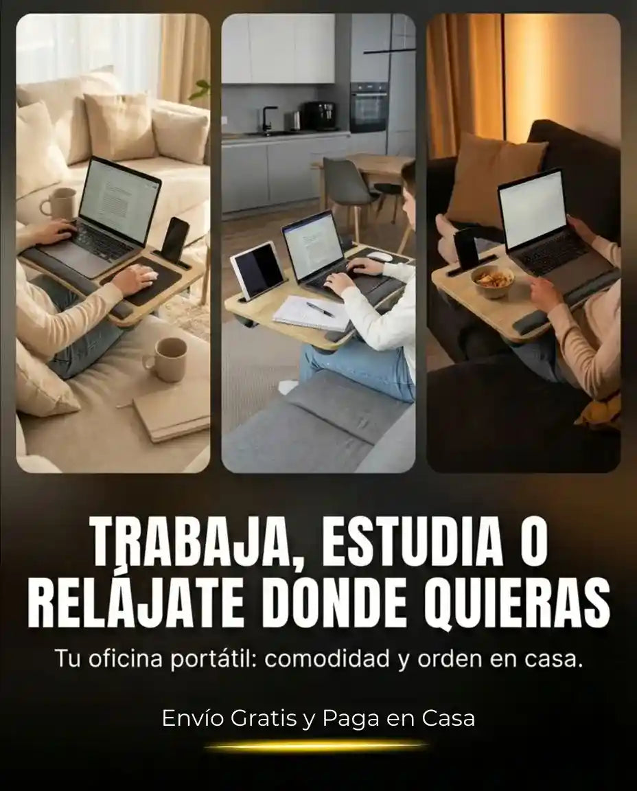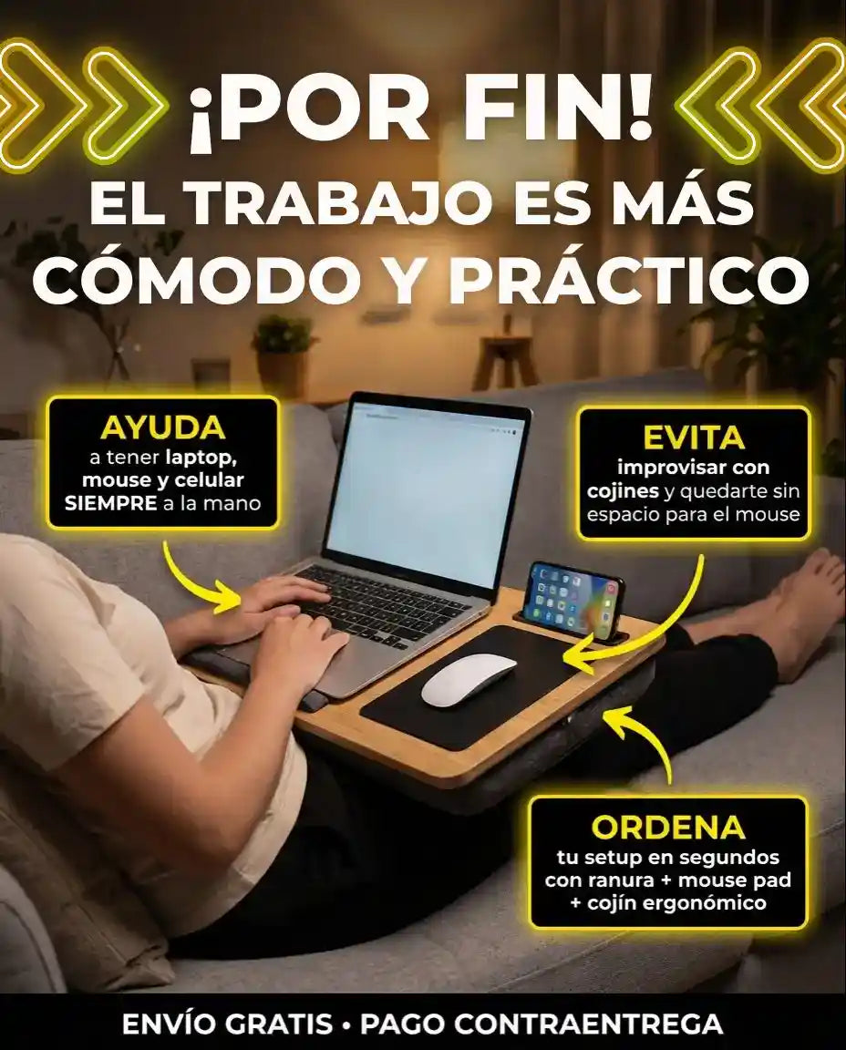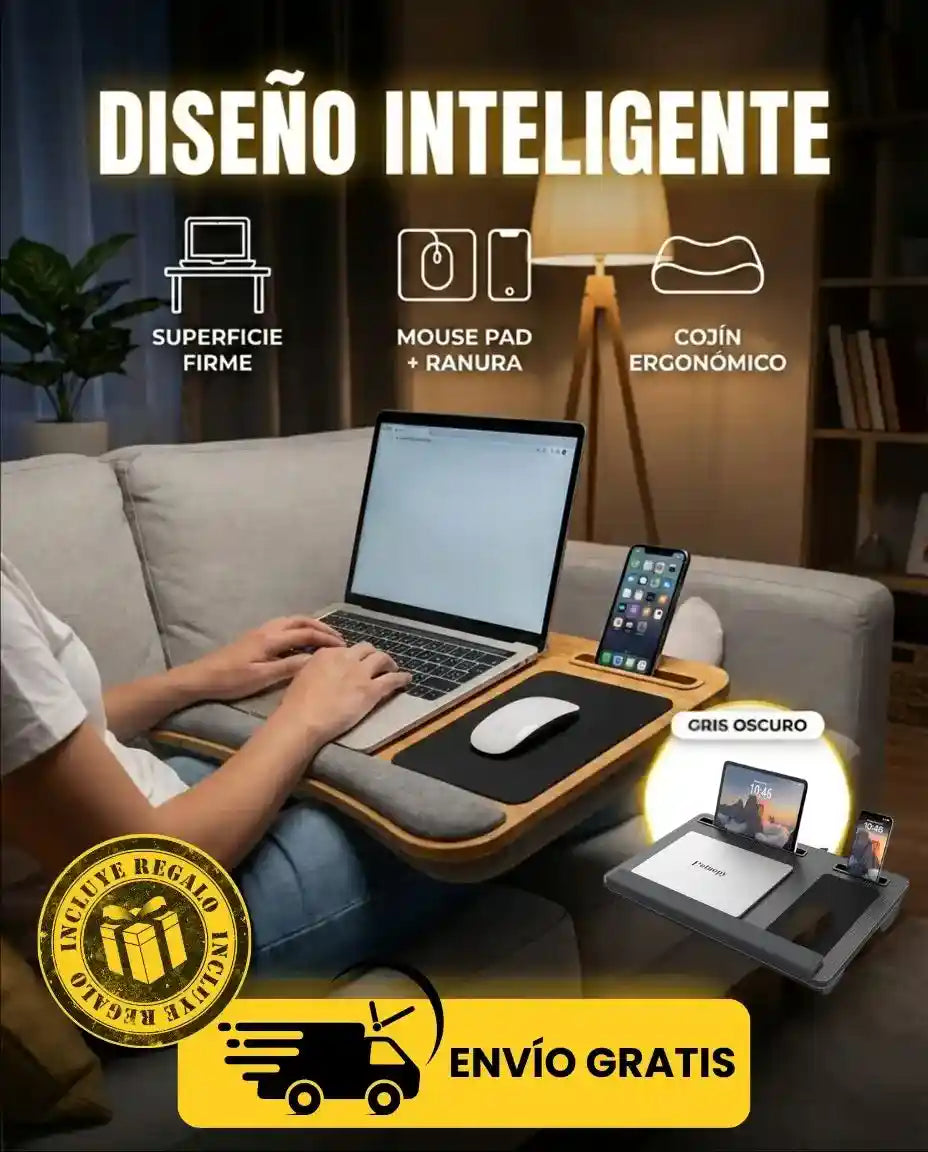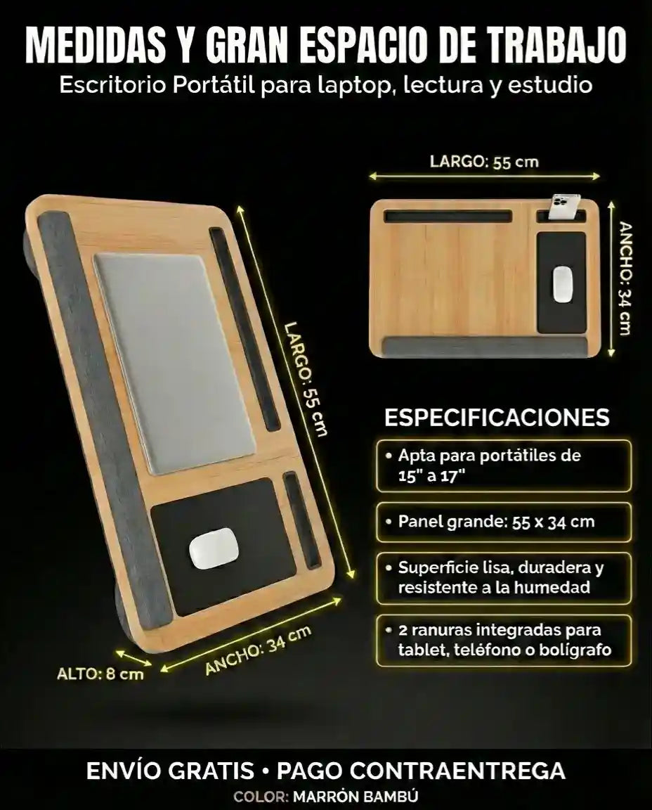 Sus dimensiones son 55 x 34 x 8 cm, ideal para trabajar/estudiar cómodo en cama o sofá.