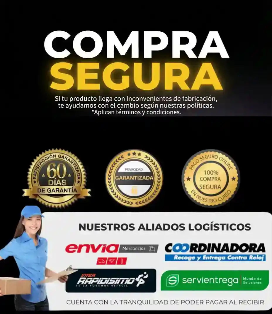 Tiene ENVÍO GRATIS y puedes pagar con PAGO CONTRAENTREGA (pagas al recibir, según cobertura de tu ciudad/transportadora) o también puede pagar con tarjeta o transferencia de manera anticipada para así obtener un descuento adicional.