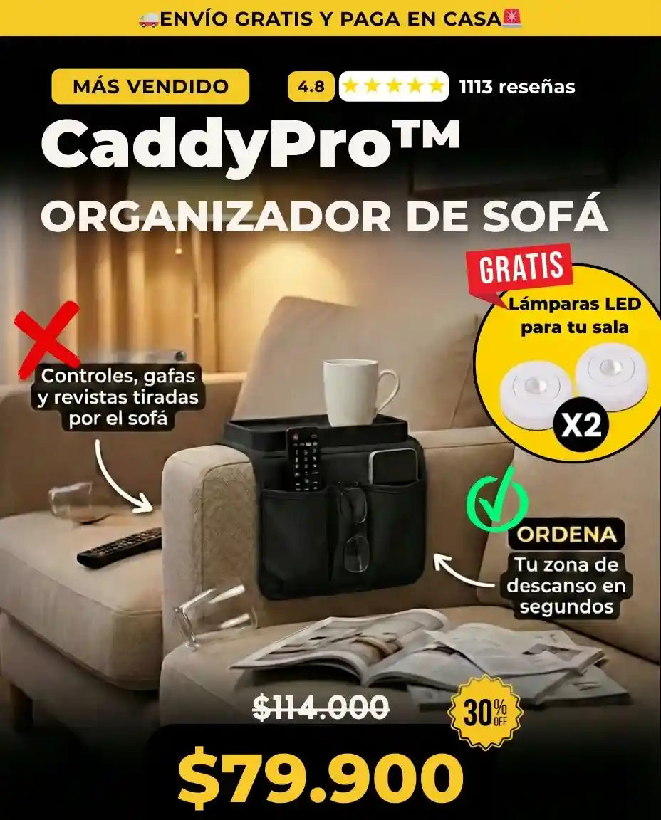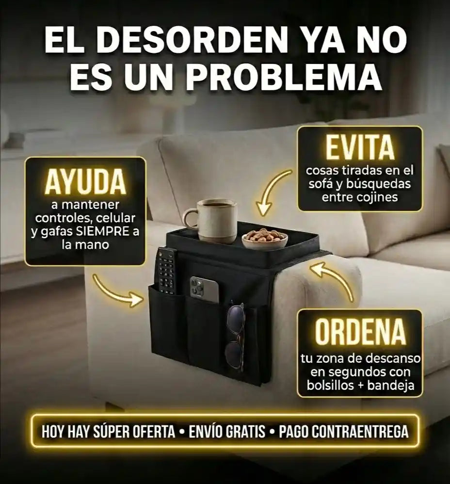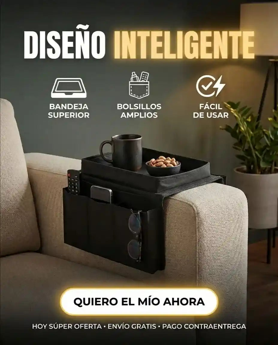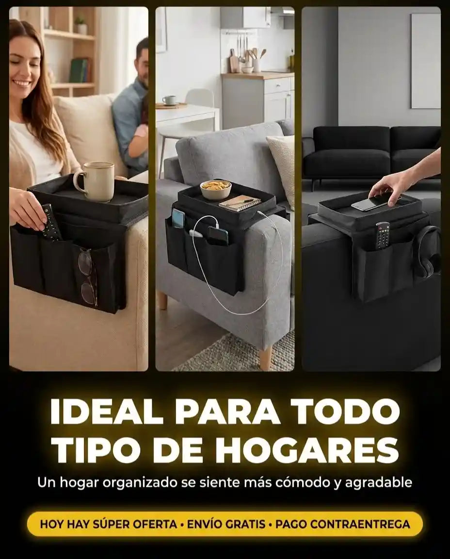 Sí, funciona en la mayoría de sofás y sillones. Para asegurar compatibilidad, compara el ancho del producto (19.1 cm) con el ancho de tu reposabrazos.